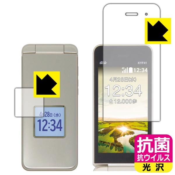かんたんケータイ KYF41 / かんたんケータイ ライト KYF43 高い除菌性能が長期間持続! 抗菌 抗ウイルス【光沢】保護フィルム (メイン用・サブ用)