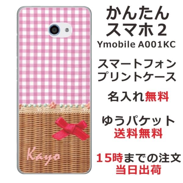 かんたんスマホ2 ケース A001kc カバー らふら 名入れ チェックリボン
