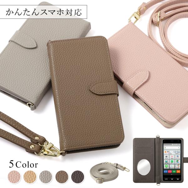 かんたんスマホ3 ケース 手帳型 かんたんスマホ2 カバー かんたんスマホ4 ケース シニア ワイモバイル 簡単スマホケース おしゃれ 京セラ ショルダー ミラー付き
