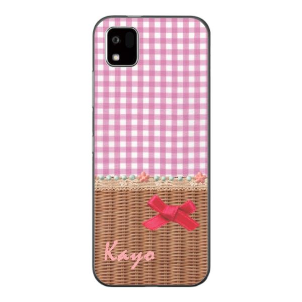 かんたんスマホ3 ケース A205KC カバー らふら 名入れ チェックリボン