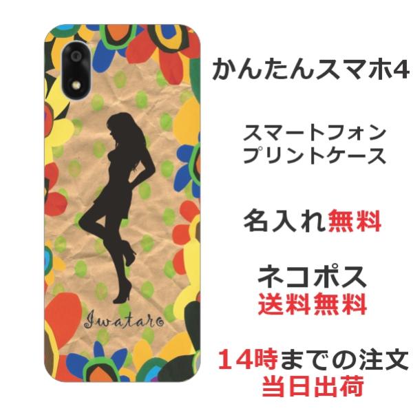 かんたんスマホ4 A402ZT らふら 名入れ スマホケース シルエットガール