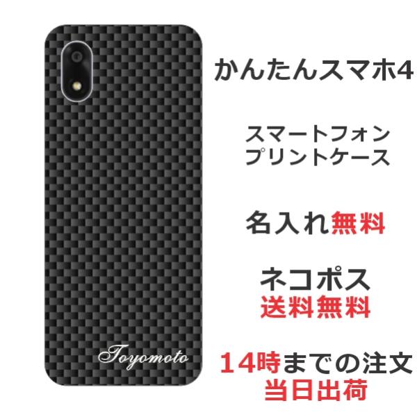 かんたんスマホ4 A402ZT らふら 名入れ スマホケース カーボン ブラック