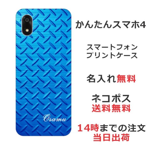 かんたんスマホ4 A402ZT らふら 名入れ スマホケース メタル ブルー