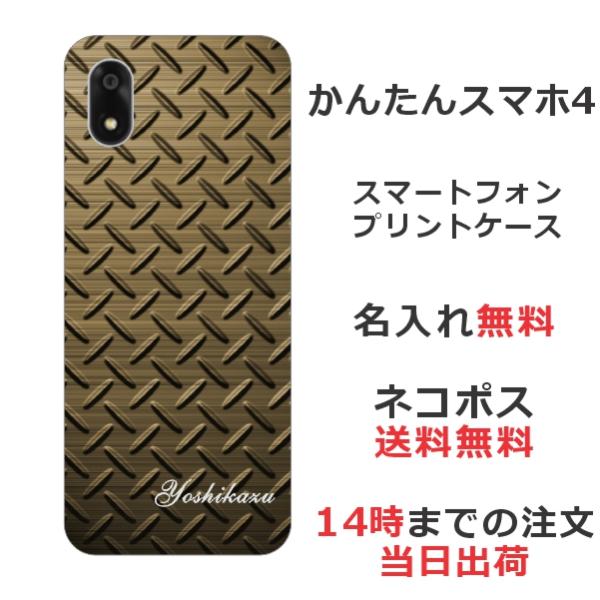 かんたんスマホ4 A402ZT らふら 名入れ スマホケース メタル ゴールド