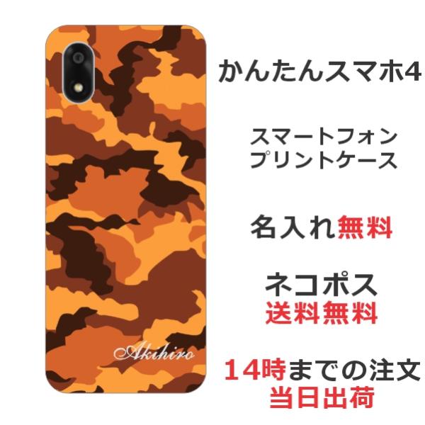かんたんスマホ4 A402ZT らふら 名入れ スマホケース 迷彩 ブラウン