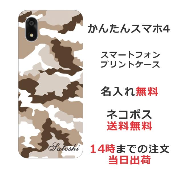 かんたんスマホ4 A402ZT らふら 名入れ スマホケース 迷彩 モノトーン