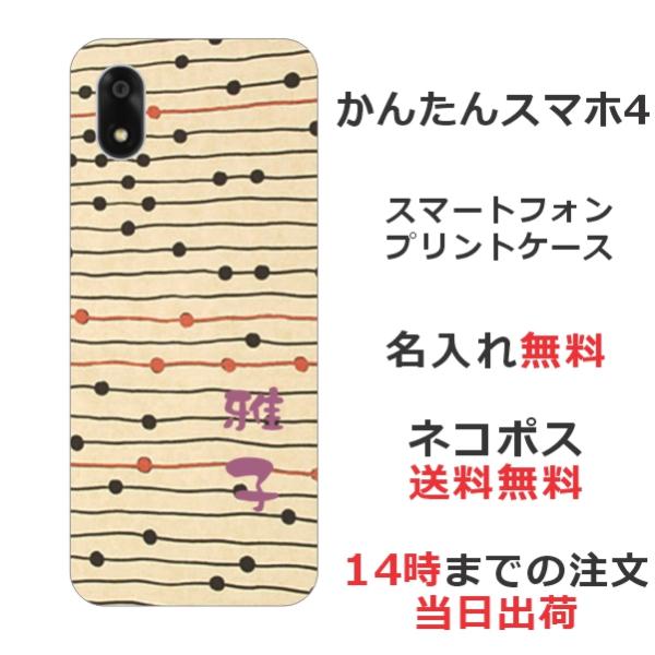 かんたんスマホ4 A402ZT らふら 名入れ スマホケース 和柄 モダンベージュボーダー