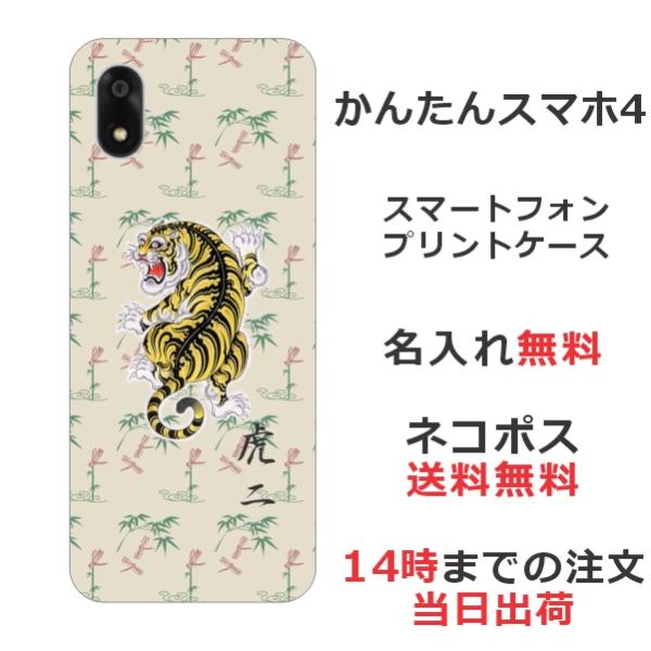 かんたんスマホ4 A402ZT らふら 名入れ スマホケース 和柄 竹蜻蛉虎