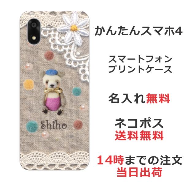 かんたんスマホ4 A402ZT らふら 名入れ スマホケース コットンレース風 クマ