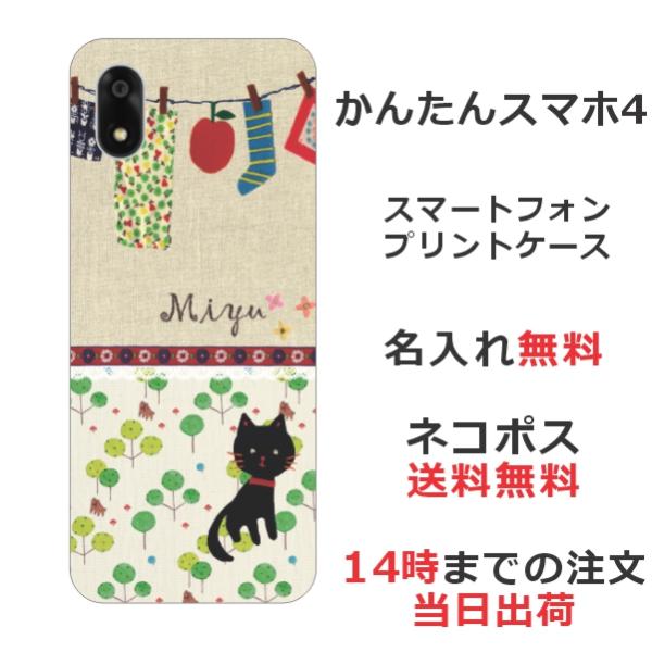 かんたんスマホ4 A402ZT らふら 名入れ スマホケース 黒猫 洗濯物