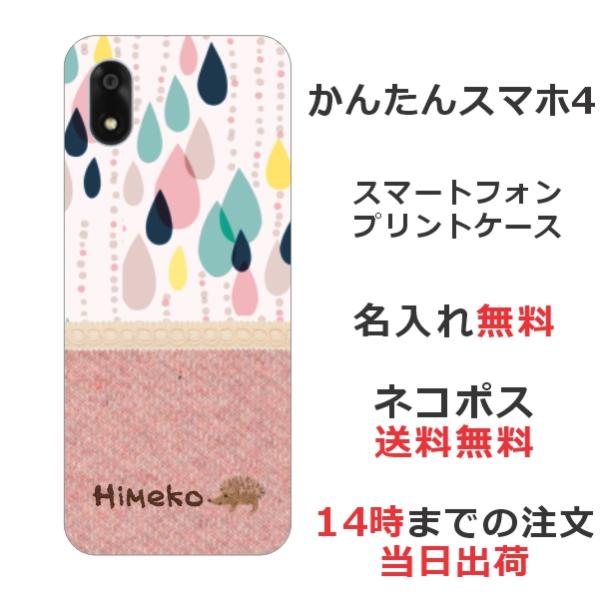 かんたんスマホ4 A402ZT らふら 名入れ スマホケース 北欧デザイン ピンク しずく