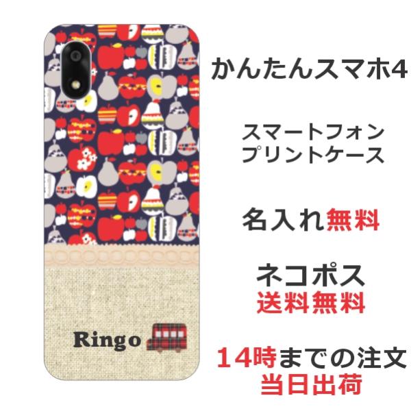 かんたんスマホ4 A402ZT らふら 名入れ スマホケース 北欧デザイン フルーツ ネイビー