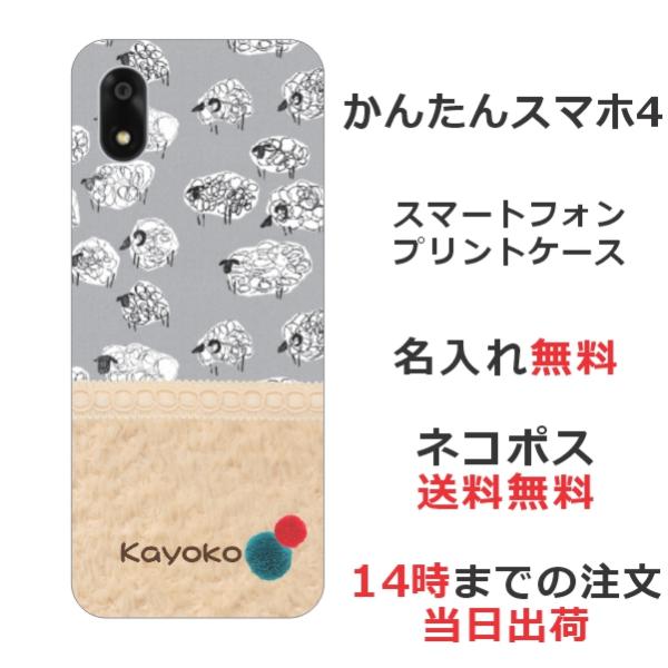 かんたんスマホ4 A402ZT らふら 名入れ スマホケース 北欧デザイン ひつじさん