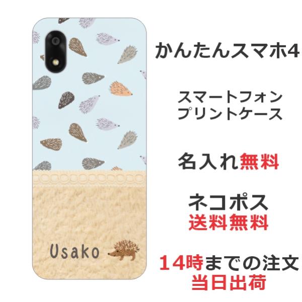かんたんスマホ4 A402ZT らふら 名入れ スマホケース 北欧デザイン ハリネズミ