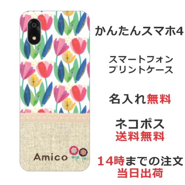 かんたんスマホ4 A402ZT らふら 名入れ スマホケース 北欧デザイン チューリップ