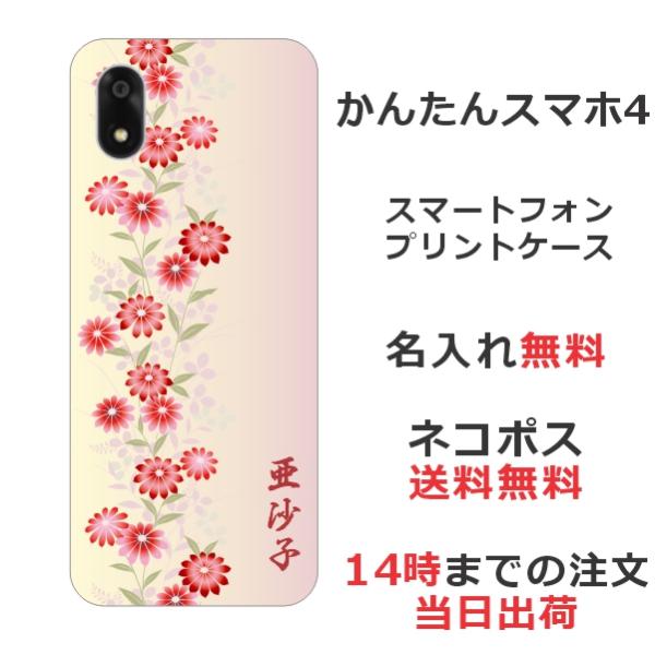 かんたんスマホ4 A402ZT らふら 名入れ スマホケース 和柄 花 撫子