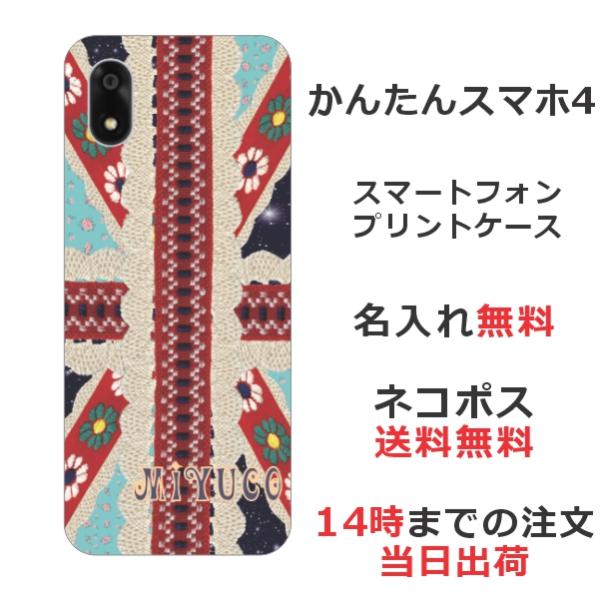 かんたんスマホ4 A402ZT らふら 名入れ スマホケース ユニオンジャック レース