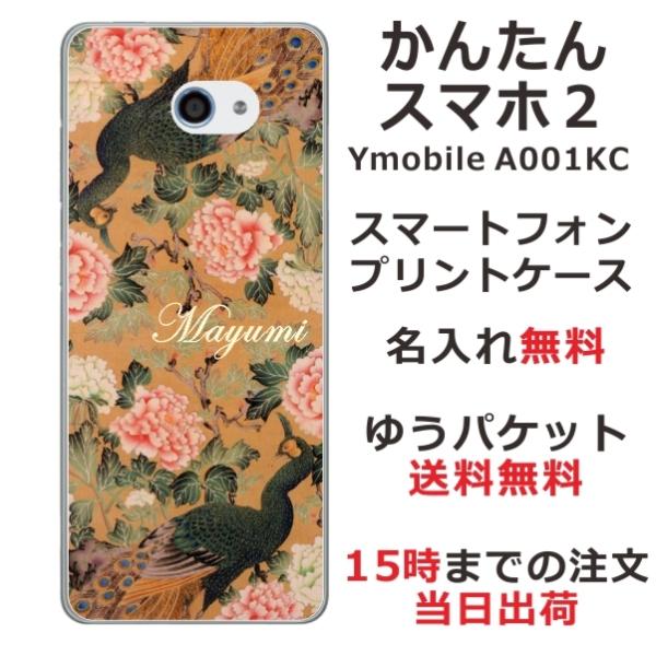 かんたんスマホ2 ケース A001kc カバー らふら 名入れ 和柄 孔雀牡丹