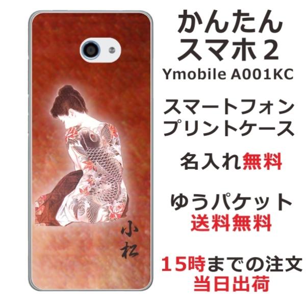 かんたんスマホ2 ケース A001kc カバー らふら 名入れ 和柄 艶女昇鯉