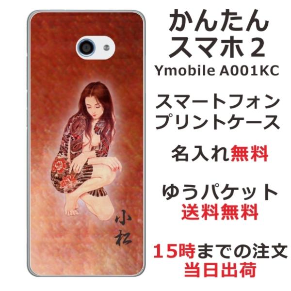 かんたんスマホ2 ケース A001kc カバー らふら 名入れ 和柄 艶女昇龍牡丹
