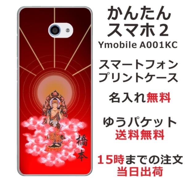 かんたんスマホ2 ケース A001kc カバー らふら 名入れ 和柄 後光