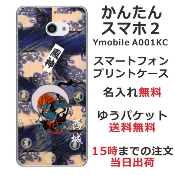 かんたんスマホ2 ケース A001kc カバー らふら 名入れ 和柄 風神
