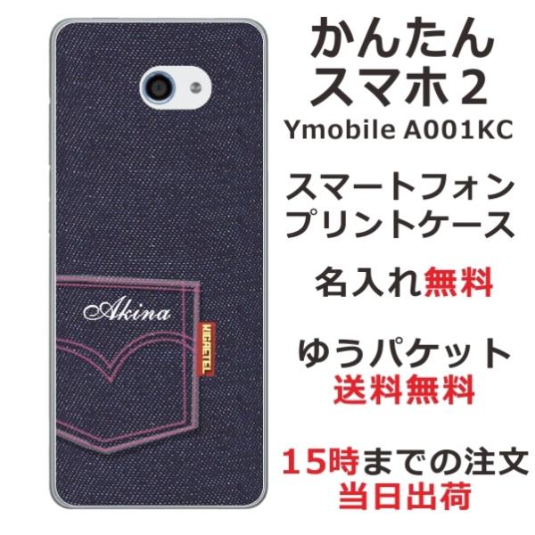 かんたんスマホ2 ケース A001kc カバー らふら 名入れ デニム