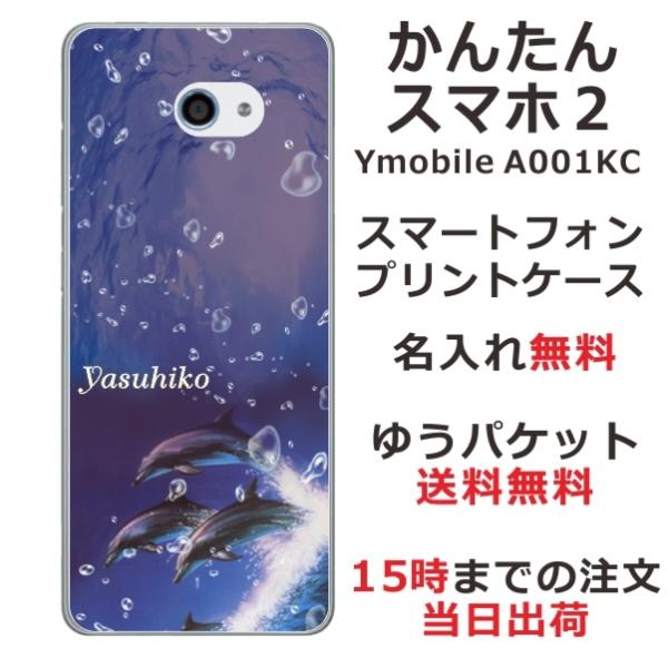 かんたんスマホ2 ケース A001kc カバー らふら 名入れ ドルフィン ジャンプ