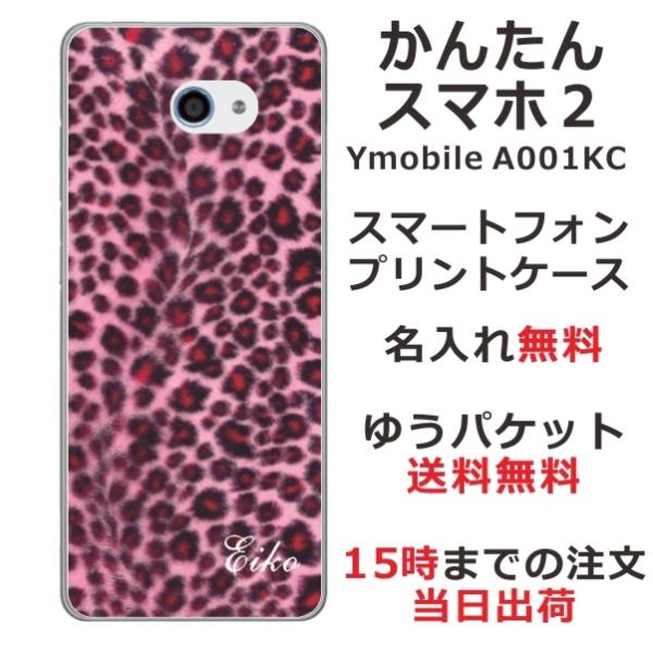 かんたんスマホ2 ケース A001kc カバー らふら 名入れ ヒョウ柄