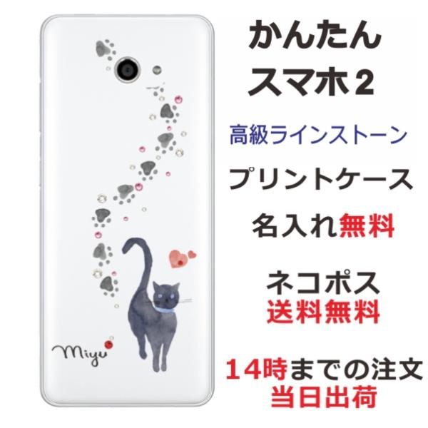 かんたんスマホ2 ケース A001kc カバー ラインストーン かわいい らふら 名入れ 黒猫