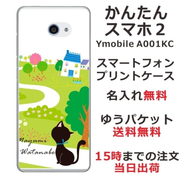 かんたんスマホ2 ケース A001kc カバー らふら 名入れ 黒猫のお散歩