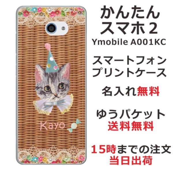 かんたんスマホ2 ケース A001kc カバー らふら 名入れ 籐 猫白