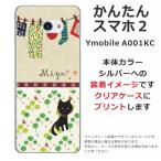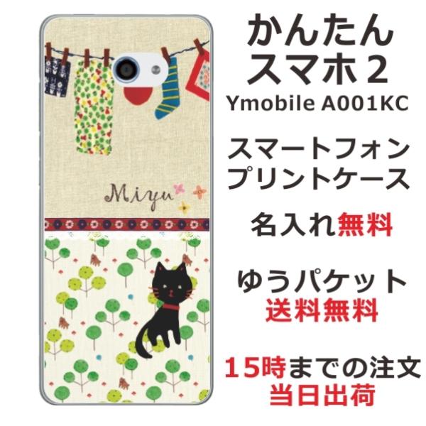 かんたんスマホ2 ケース A001kc カバー らふら 名入れ 黒猫と洗濯物グリーン森