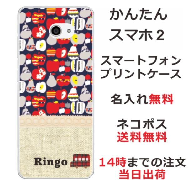 かんたんスマホ2 ケース A001kc カバー らふら 名入れ 北欧デザイン フルーツネイビー
