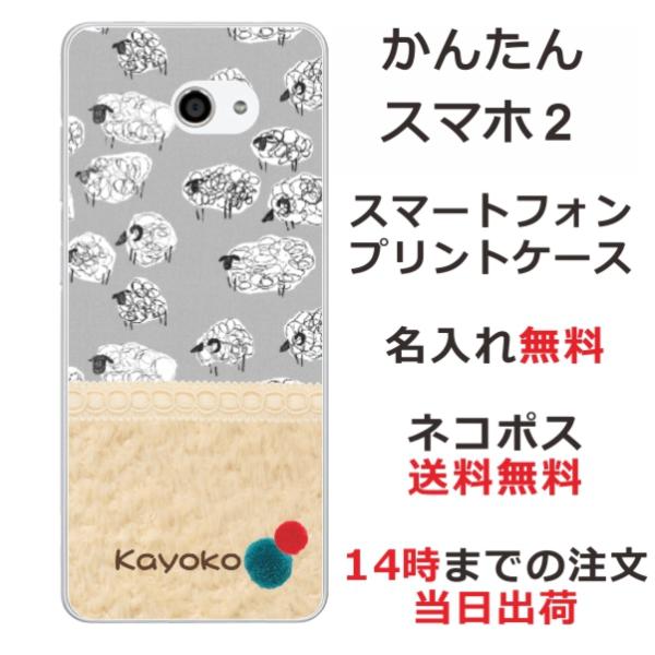 かんたんスマホ2 ケース A001kc カバー らふら 名入れ 北欧デザイン ひつじさん