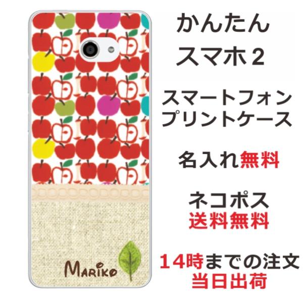 かんたんスマホ2 ケース A001kc カバー らふら 名入れ 北欧デザイン りんご