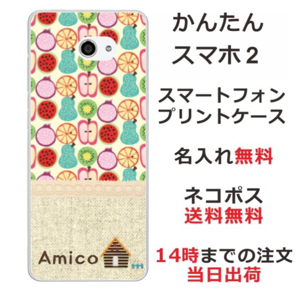 かんたんスマホ2 ケース A001kc カバー らふら 名入れ 北欧デザイン フルーツカラフル