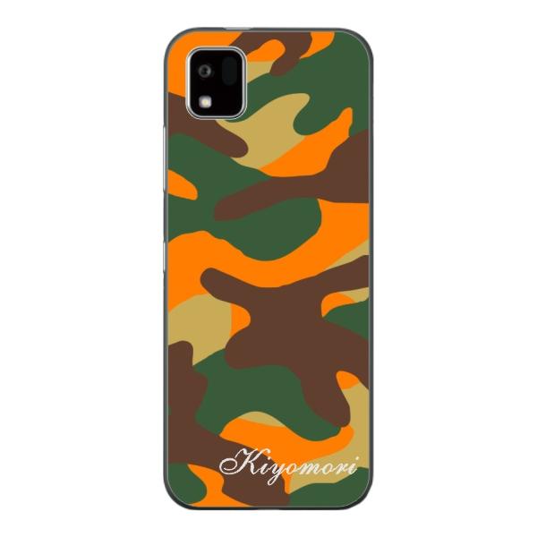 かんたんスマホ3 ケース A205KC カバー らふら 名入れ 迷彩 オレンジ
