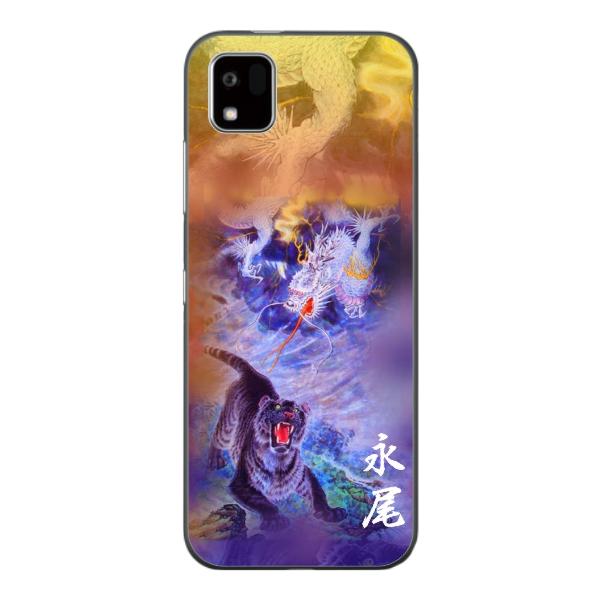 かんたんスマホ3 ケース A205KC カバー らふら 名入れ 和柄 龍虎蒼橙