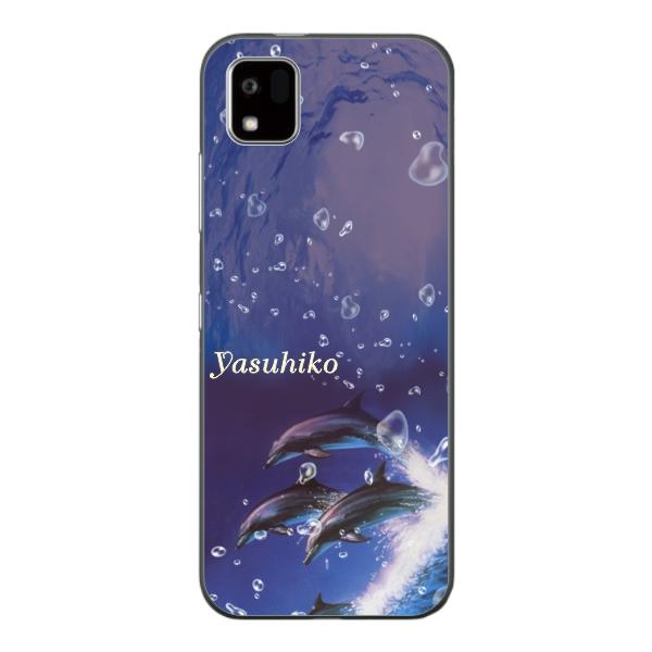 かんたんスマホ3 ケース A205KC カバー らふら 名入れ ドルフィン ジャンプ