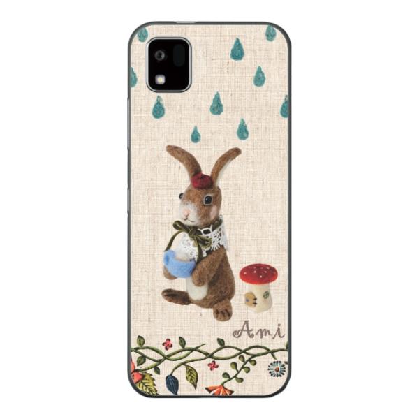 かんたんスマホ3 ケース A205KC カバー らふら 名入れ 雨降りうさぎ