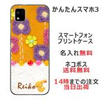 かんたんスマホ3 ケース A205KC カバー らふら 名入れ キルトフラワーオレンジ