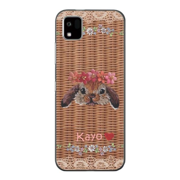 かんたんスマホ3 ケース A205KC カバー らふら 名入れ 籐うさぎ