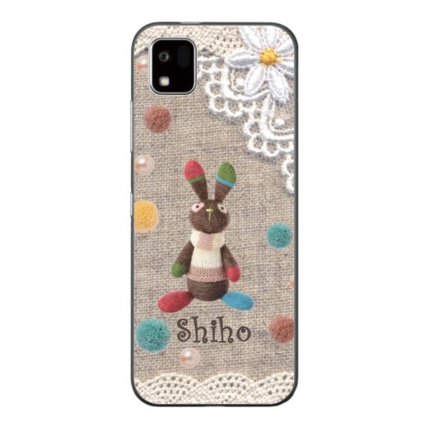 かんたんスマホ3 ケース A205KC カバー らふら 名入れ コットンレース風 うさぎ