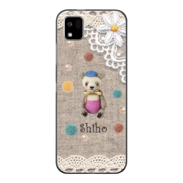 かんたんスマホ3 ケース A205KC カバー らふら 名入れ コットンレース風 クマ