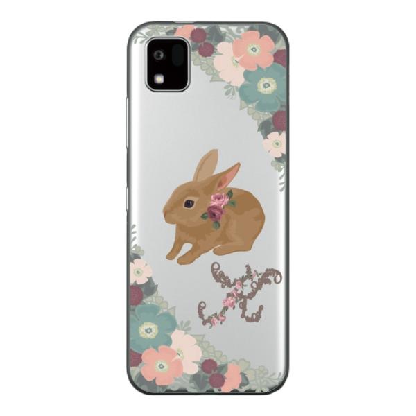 かんたんスマホ3 ケース A205KC カバー らふら 名入れ 茶ウサギイニシャル