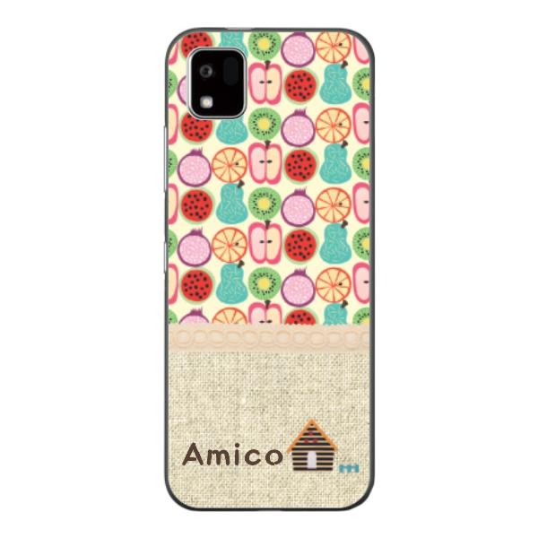かんたんスマホ3 ケース A205KC カバー らふら 名入れ 北欧デザイン フルーツ カラフル
