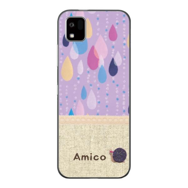 かんたんスマホ3 ケース A205KC カバー らふら 名入れ 北欧デザイン パープル しずく