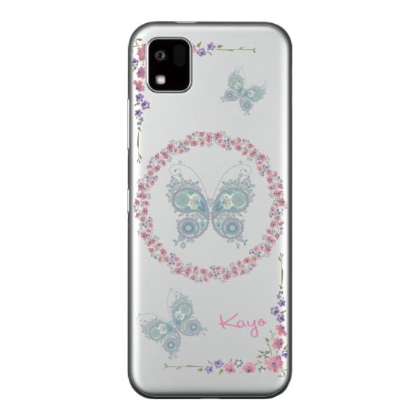 かんたんスマホ3 ケース A205KC カバー らふら 名入れ レース バタフライ