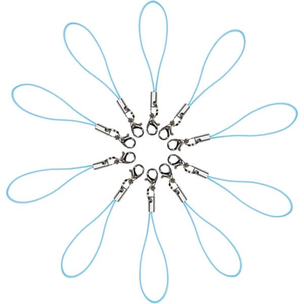 カニカン付き携帯ストラップ 金具 パーツ スカイブルー 二重リング付き キーホルダー アクセサリー リングストラップ 10本入 STP-019
